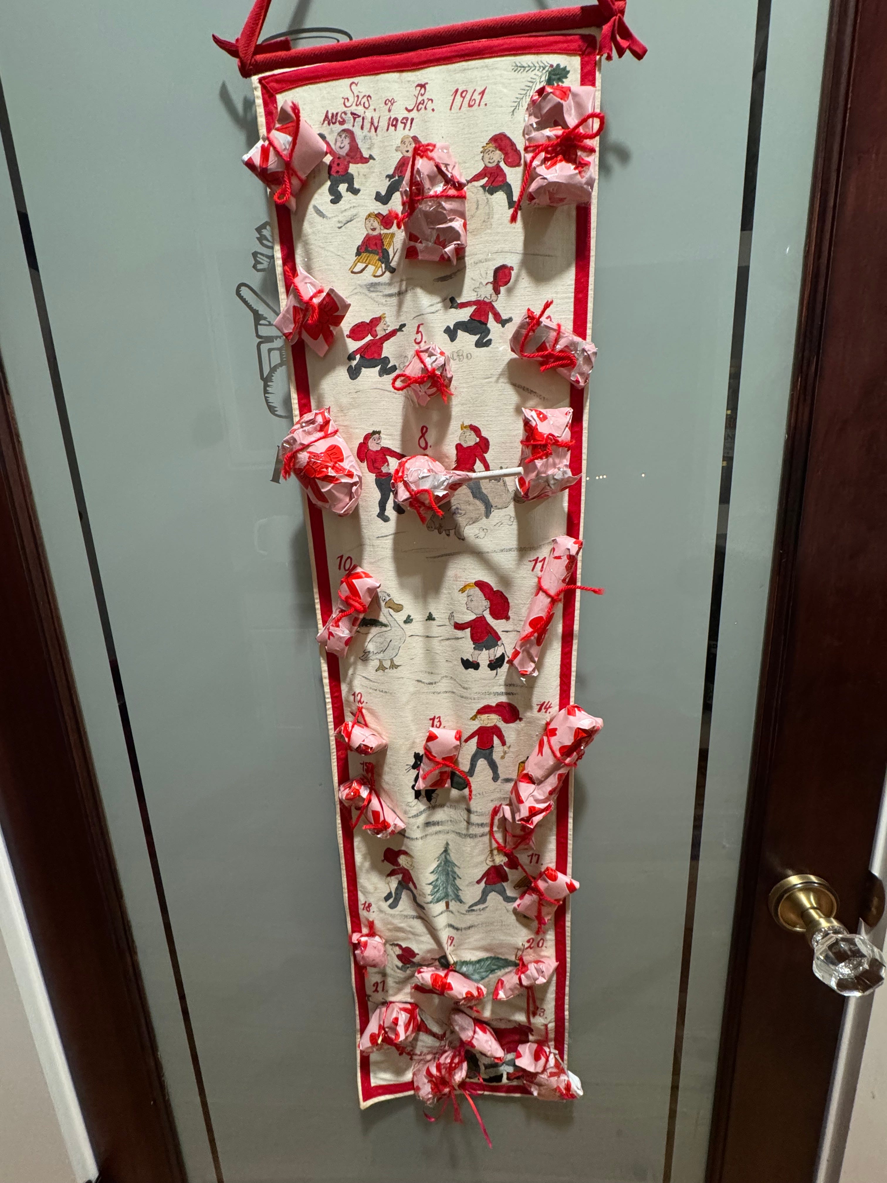 Annual tradition of putting together the advent calendar that was passed down from my mother to me. Being able to witness my daughter experience the holidays brings back the magic of Christmas.